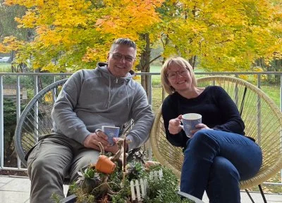 Foto: Andreas Hruschka, Vorstand Zusammen erreichen wir mehr e. V. und Susanne Wagner, Leitung Hospiz Sankt Felix.